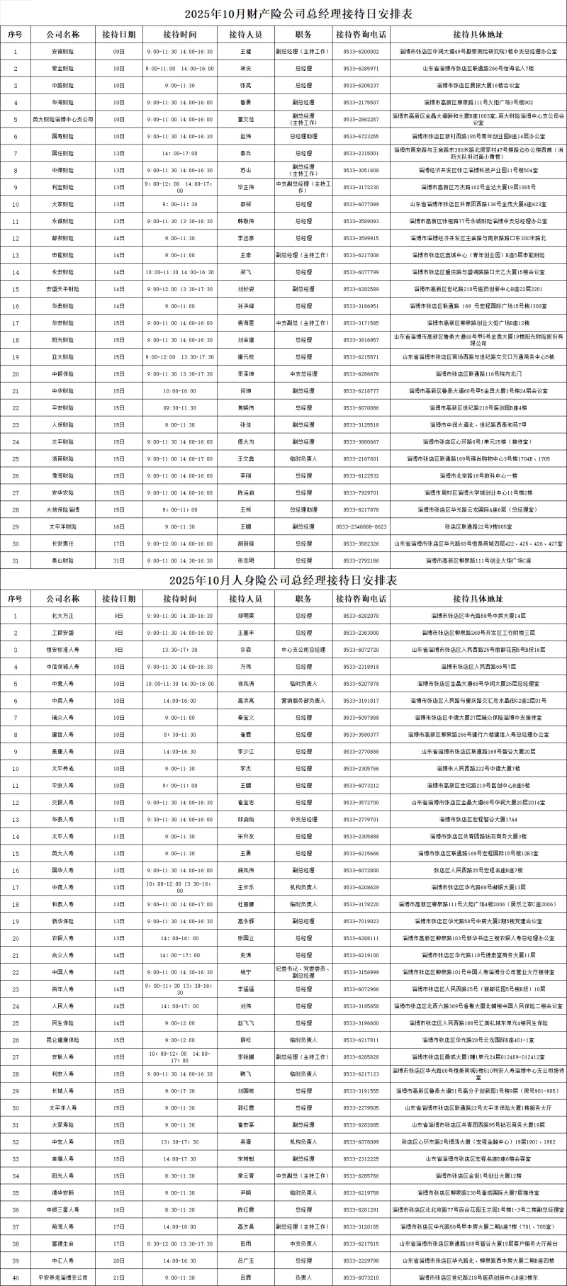 为进一步畅通信访投诉渠道,广泛听取保险消费者的诉求和意见,切实保护广大保险消费者的合法权益。根据国家金融监督管理总局山东监管局的相关要求,现将2025年10月淄博市保险公司总经理接待日安排表公告如下: