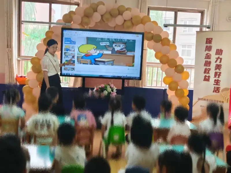 讲师用孩子们能听懂的语言,以活泼生动的课件,在游戏中叩开认知之门,在他们心中种下“感恩父母”的种子。最动人的环节,来自于一个关于“风险”的温暖故事。“人人为我,我为人人”的保险概念,化作了一个最朴素也最深刻的故事,让孩子们懵懂的眼神里,第一次映入了“互助”与“保障”的光亮。活动还带孩子们“认识人民币”、“做爱护人民币小卫士”、让孩子们理解什么是“用劳动换取报酬”、“争当反洗钱小参与者”、“什么是反洗钱”。孩子们随后化身“小小工匠”,认真地完成串珠手链的“工作”,获得一张教具钱币作为“劳动报酬”。小家伙们仔细地数着手中的“钱”,然后排队到旁边的“文具小超市”,兑换自己的收获。这一刻,金融不再是书本上的术语。它变成了指尖的劳动,是计算时的专注,是收获时的欢呼。它让孩子们真切地体验了“付出才有收获”的金融第一课。