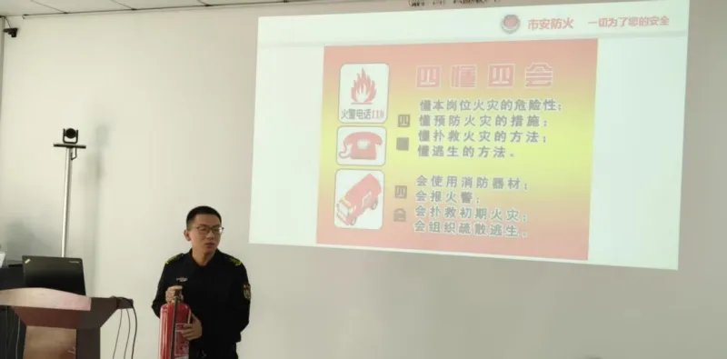 培训中,李教官结合近年来典型火灾案例,以图文并茂的形式深入浅出地讲解了办公场所火灾隐患排查、初期火灾扑救技巧、火场逃生自救常识等内容,重点讲解了电器使用、易燃物品存放等常见安全风险点,强调了“预防为先、科学处置”的安全理念。在实操演练环节,李教官现场示范了干粉灭火器“提、拔、握、压”的标准操作流程,详细说明操作注意事项与安全距离要求,互动氛围热烈。此次培训将理论知识与实战演练有机结合,不仅让员工系统掌握了消防安全必备技能,更筑牢了思想上的“安全防火墙”。